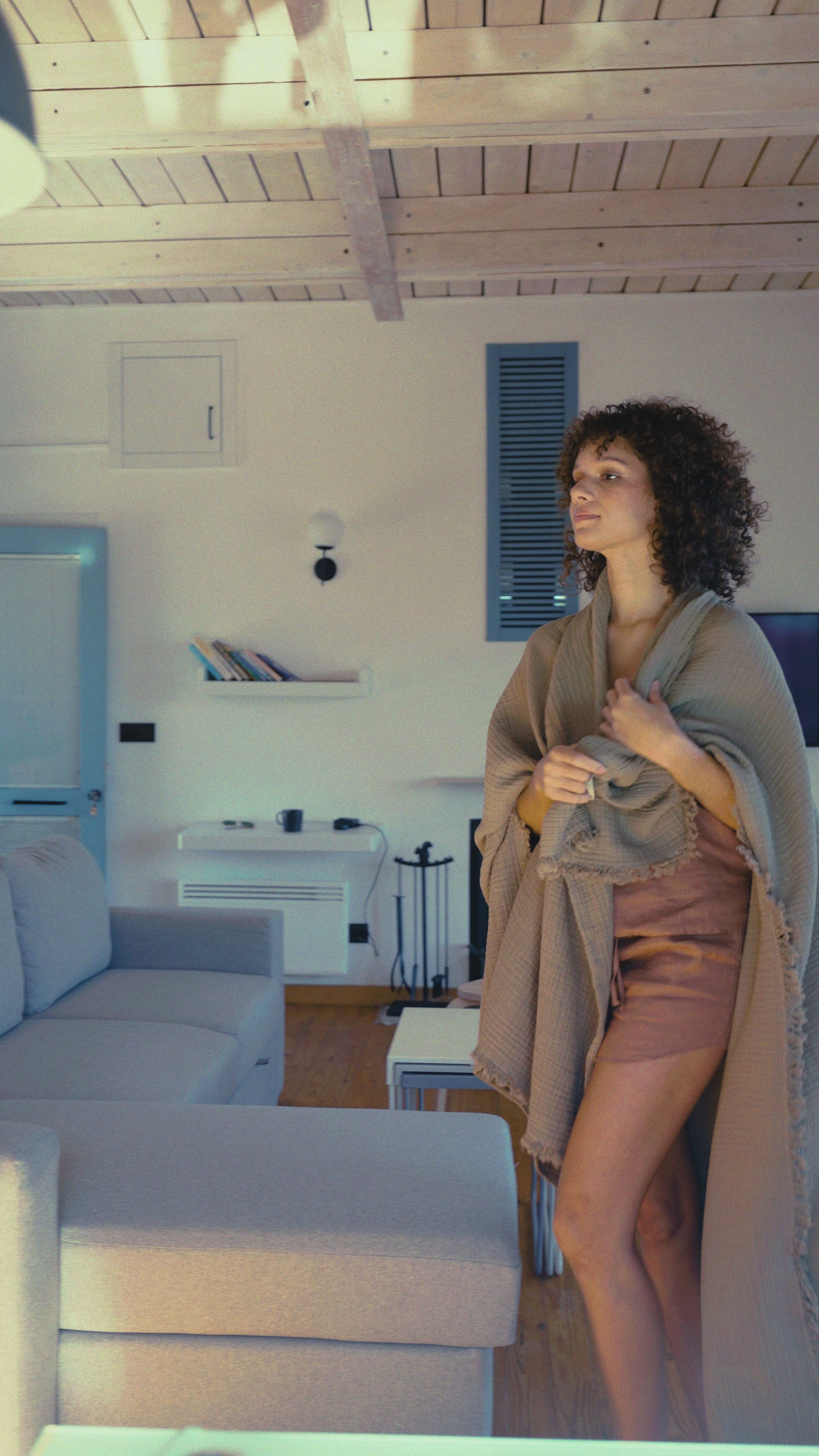 Pure comfort in its simplest form. Made from four layers of airy gauze cotton, this throw is soft, breathable, and effortlessly cozy. No extra details, just a beautifully crinkled muslin texture that does all the talking.