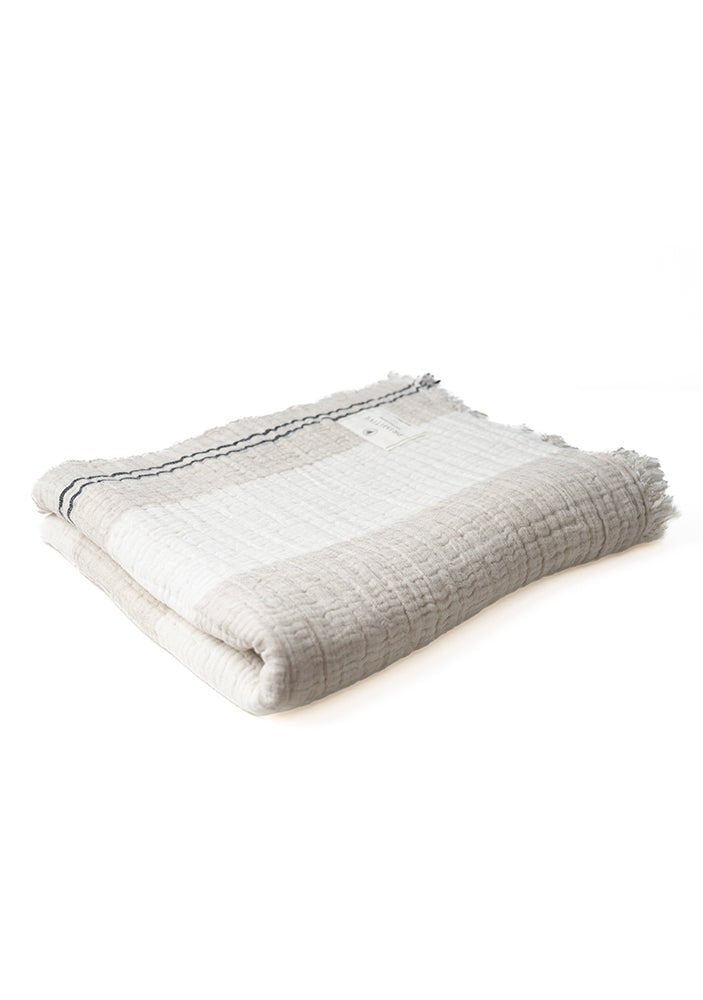 A rare blend of linen and cotton, woven into four layers of airy gauze for a texture that feels as natural as it looks. Lightweight yet cozy, it’s made for effortless layering across three seasons.