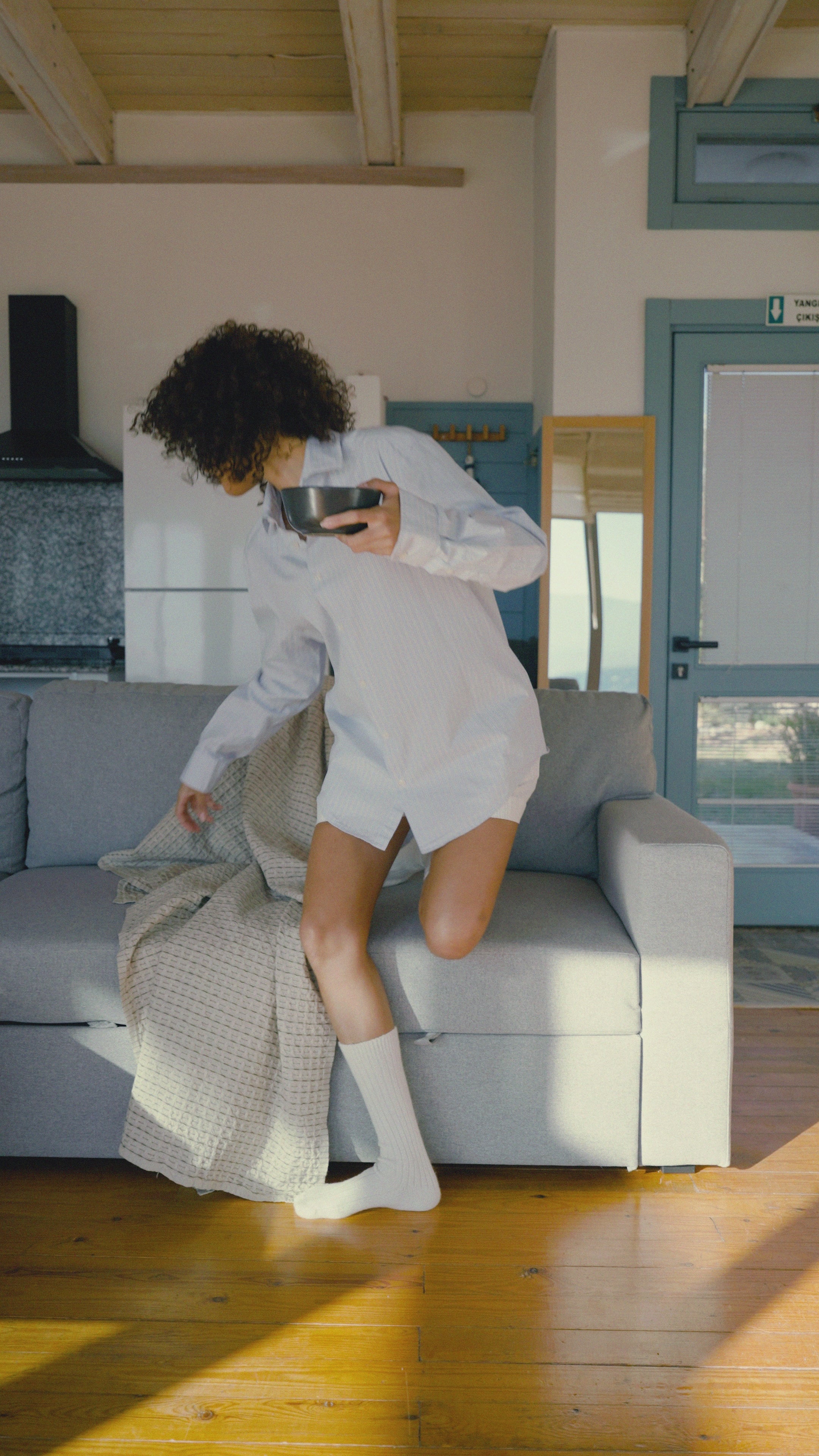 Woven from pure washed organic linen, light and breathable, it’s made for long evenings with open windows, seaside escapes, and everything in between.