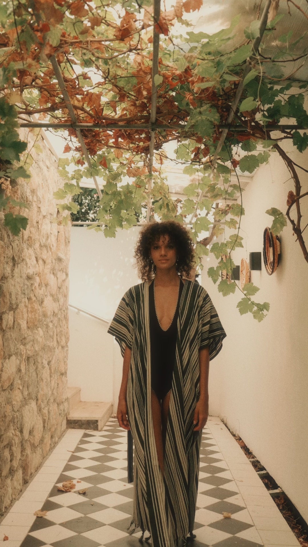 Crafted from a vintage-style woven fabric, it blends tradition with modern edge. Wear it as a kimono, loungewear, or beach cover-up—it’s as versatile as it is unique.